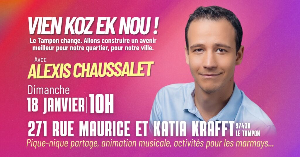 Pour apporter le changement dont le Tampon a besoin en 2026, on vous donne rendez-vous au 271 Maurice et Katia KRAFFT, 97418 Le Tampon