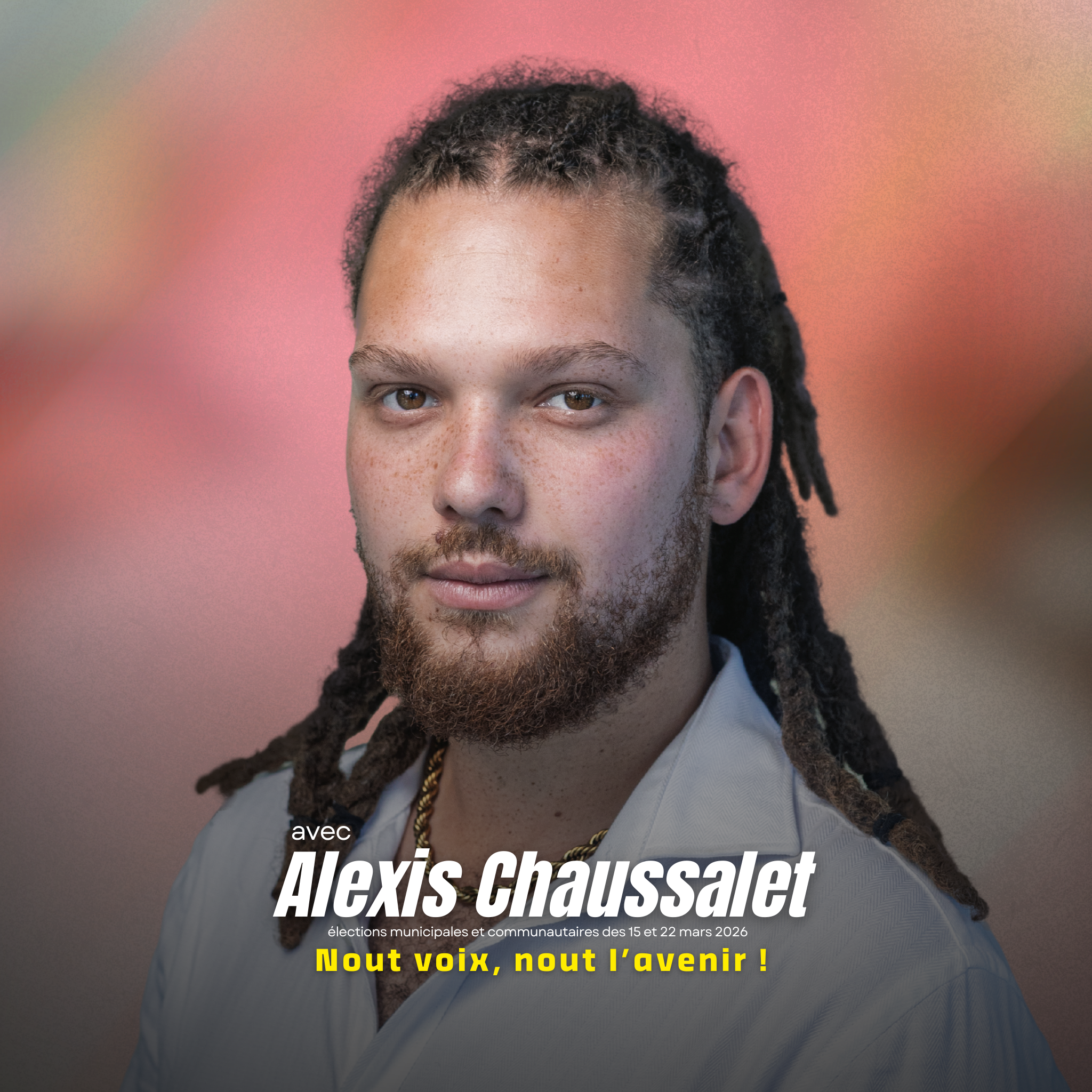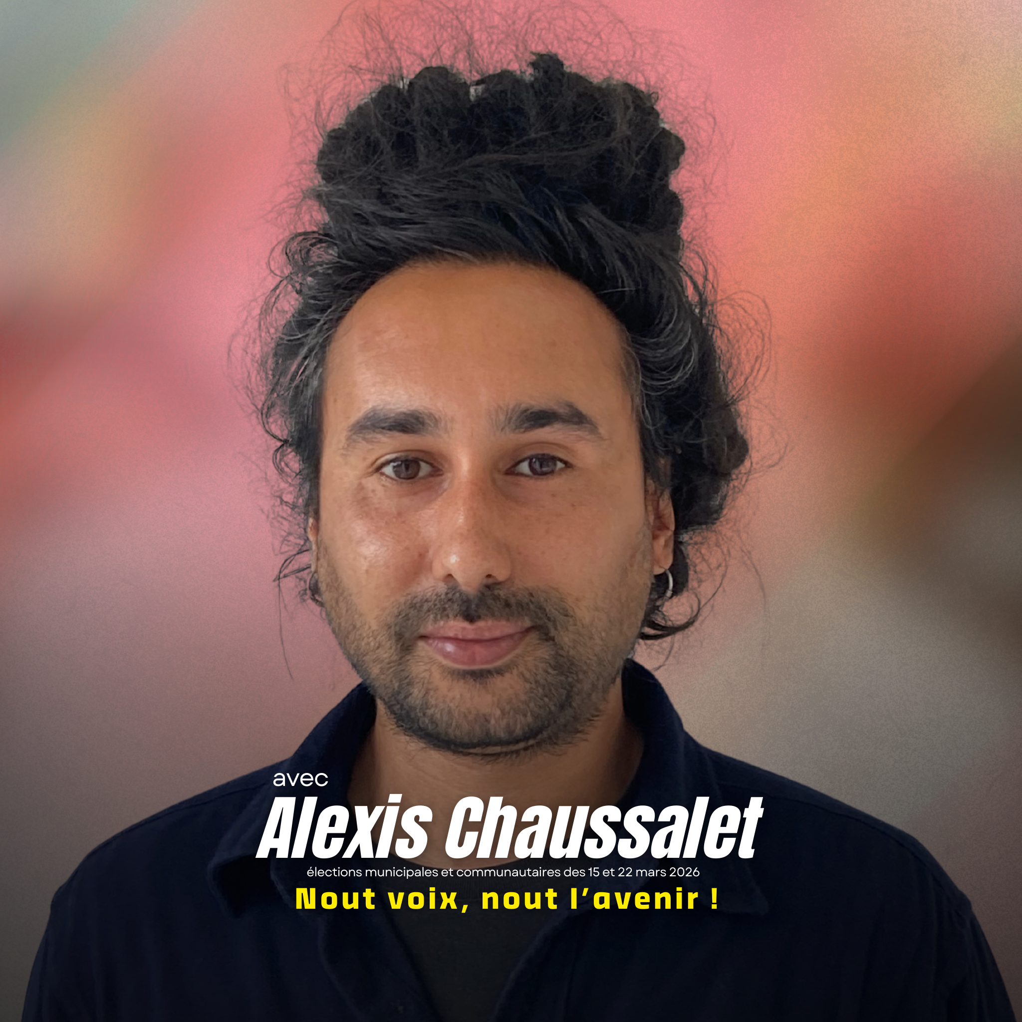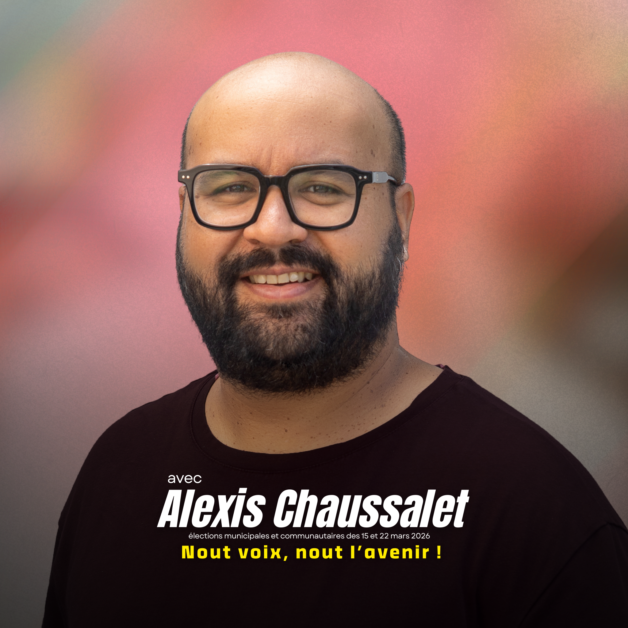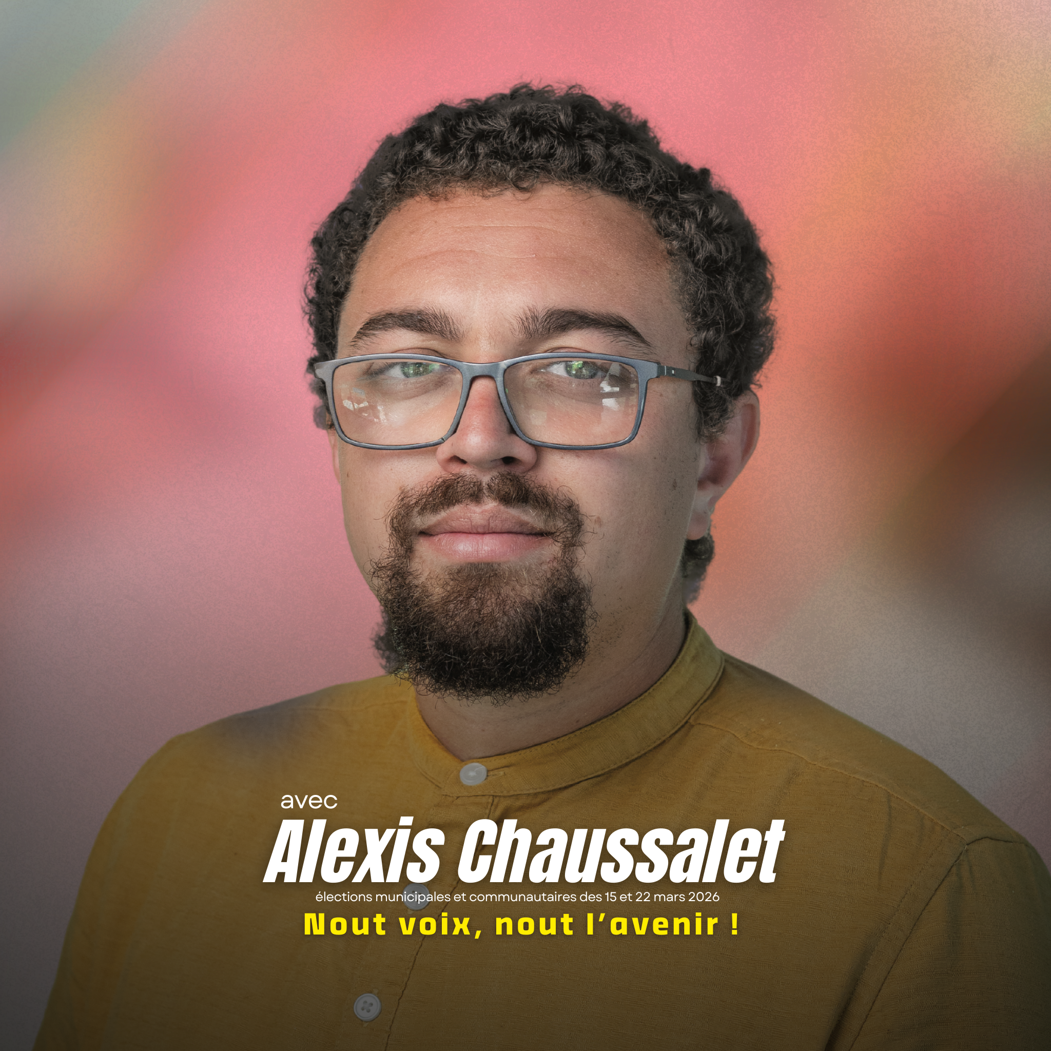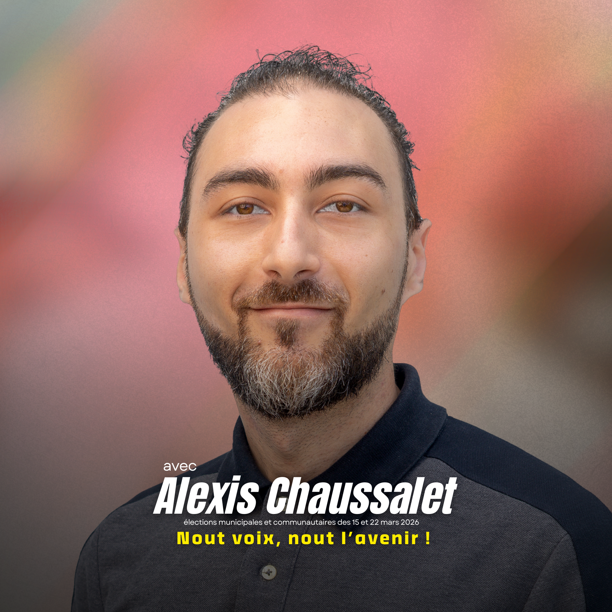 Engagé dès le lycée au Tampon, Alexis Chaussalet s’est formé très tôt au militantisme en créant la section locale de l’UNL à 15 ans. Militant pour la justice sociale, fiscale et climatique, il a poursuivi son engagement au sein d’Attac. Il est animé par la conviction que l’action collective et la démocratie réelle sont les clés du changement pour le Tampon.