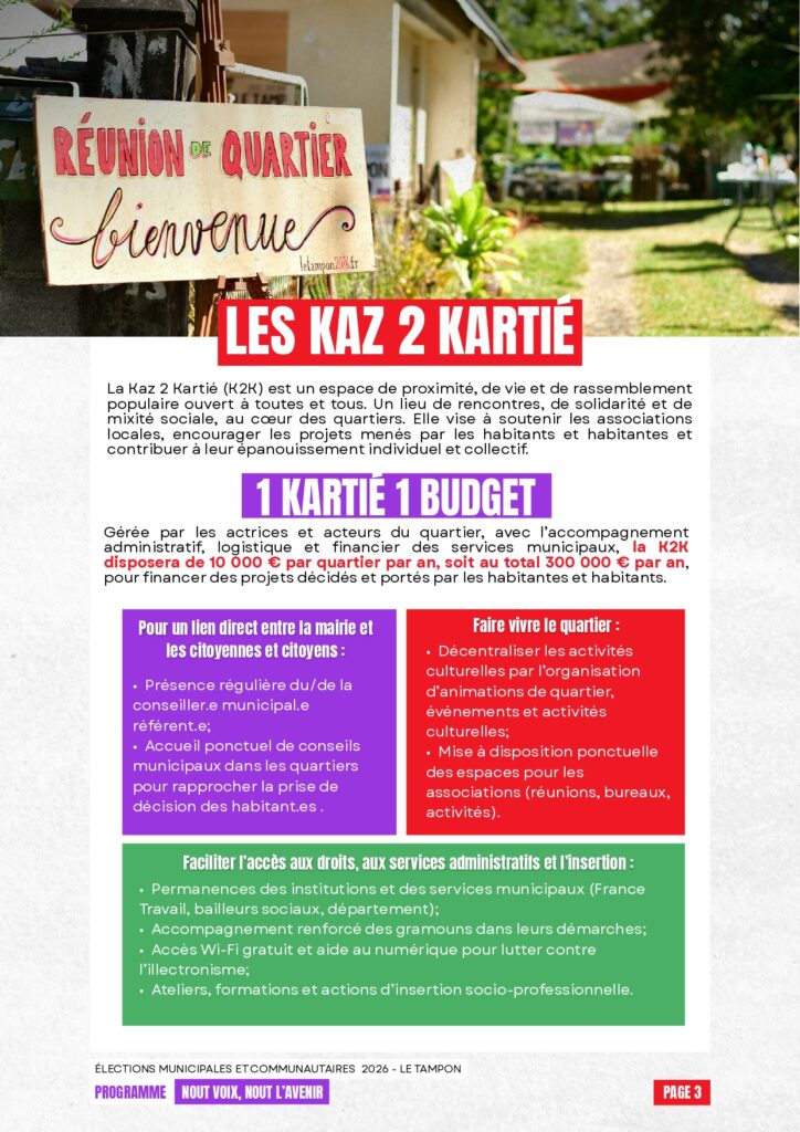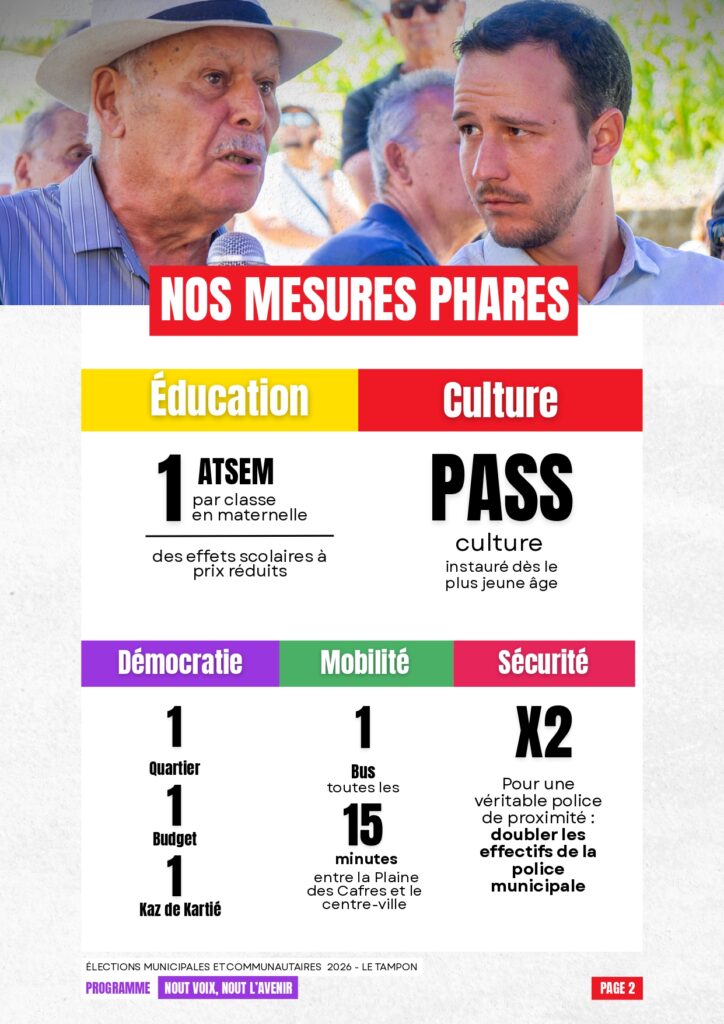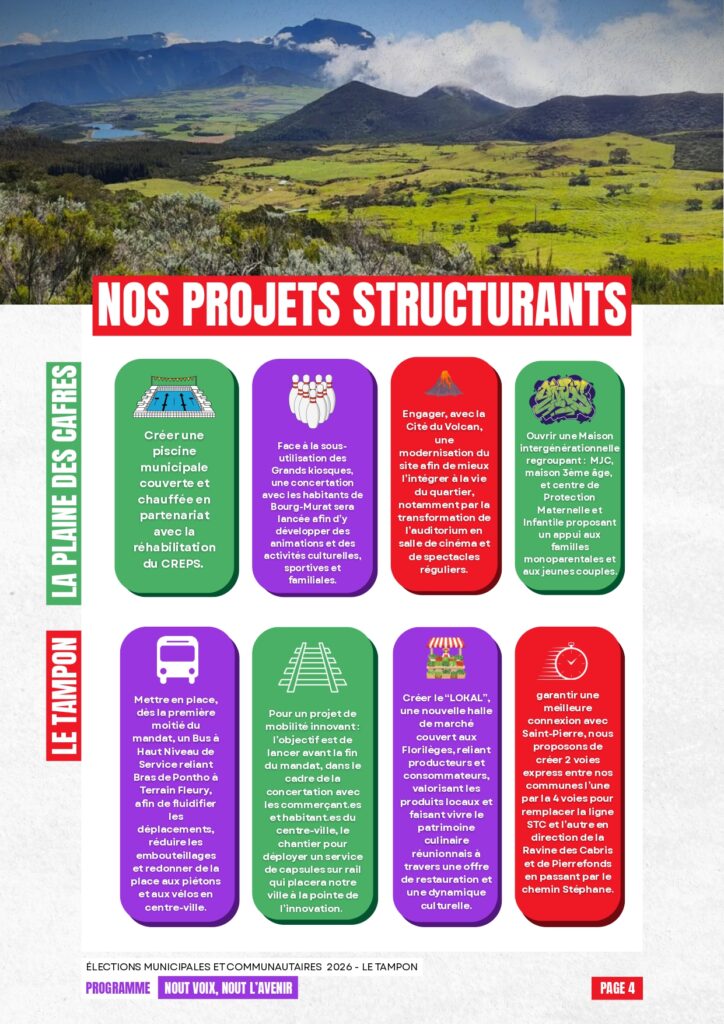 Vous trouverez ci-dessous le résumé en 4 pages de notre programme pour Le Tampon.